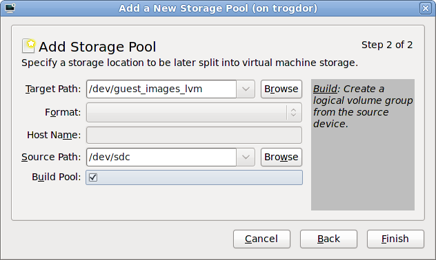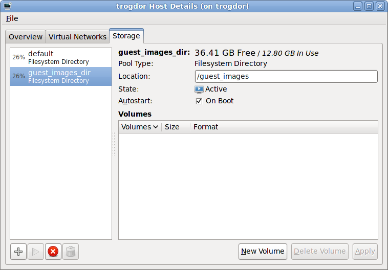 /var/lib/libvirt/images/ folder. If you use a different directory you must add the directory to the SELinux policy. Refer to Section 16.2, “SELinux and virtualization” for details.